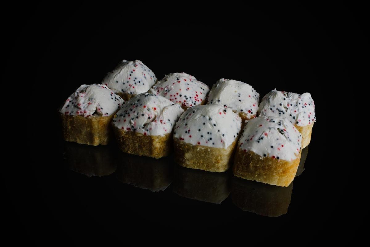 Рис, нори, окунь, огурец, авокадо, сыр, тобико, панировка